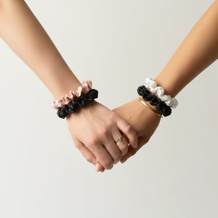 Le satin réduit le frottement par rapport aux élastiques classiques. Tes cheveux restent plus forts et moins abîmés, surtout pour les boucles fragiles ou les cheveux fins.